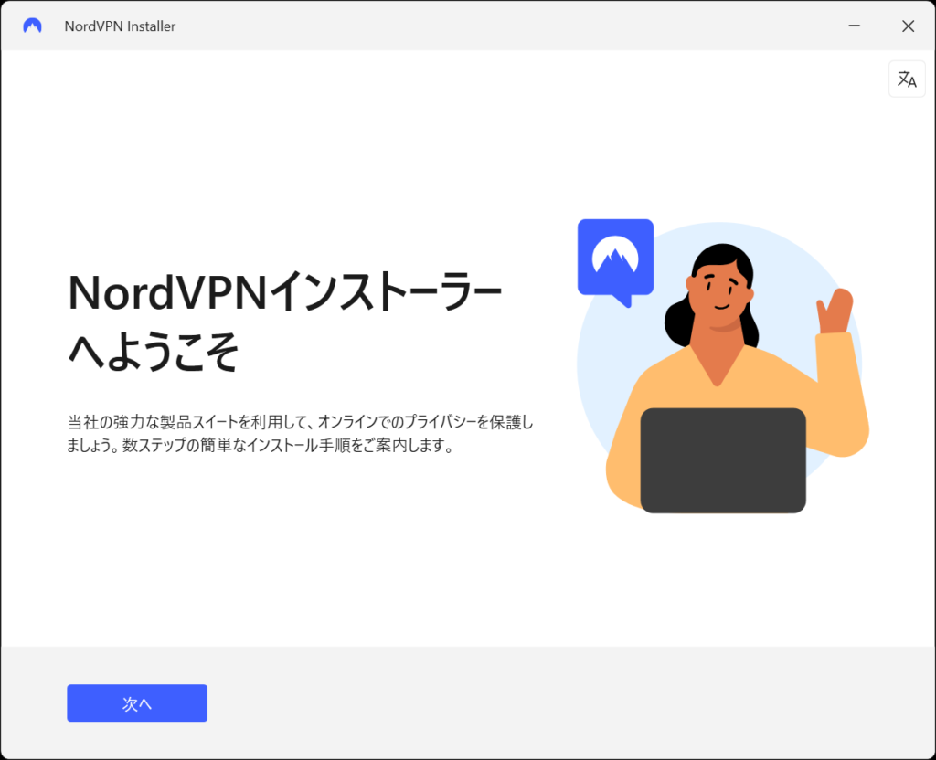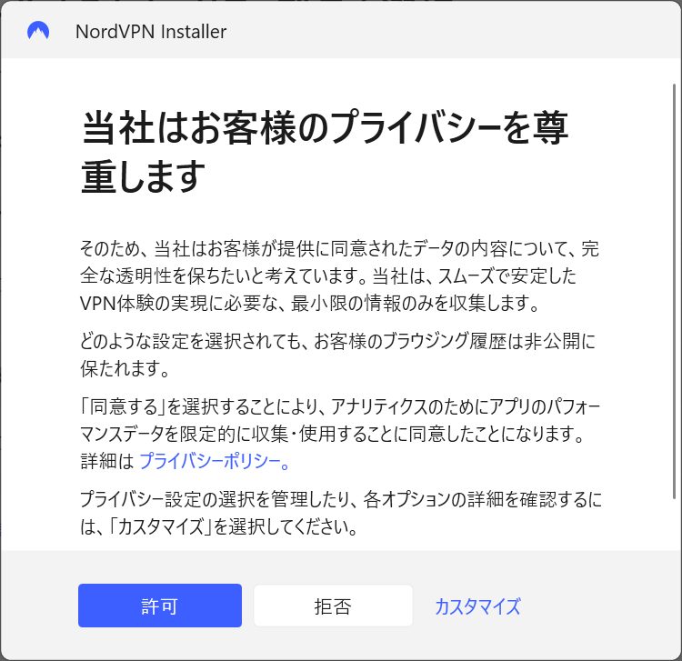 「NordInstaller.exe」をクリックすると上記のようなポップアップが表示されます。