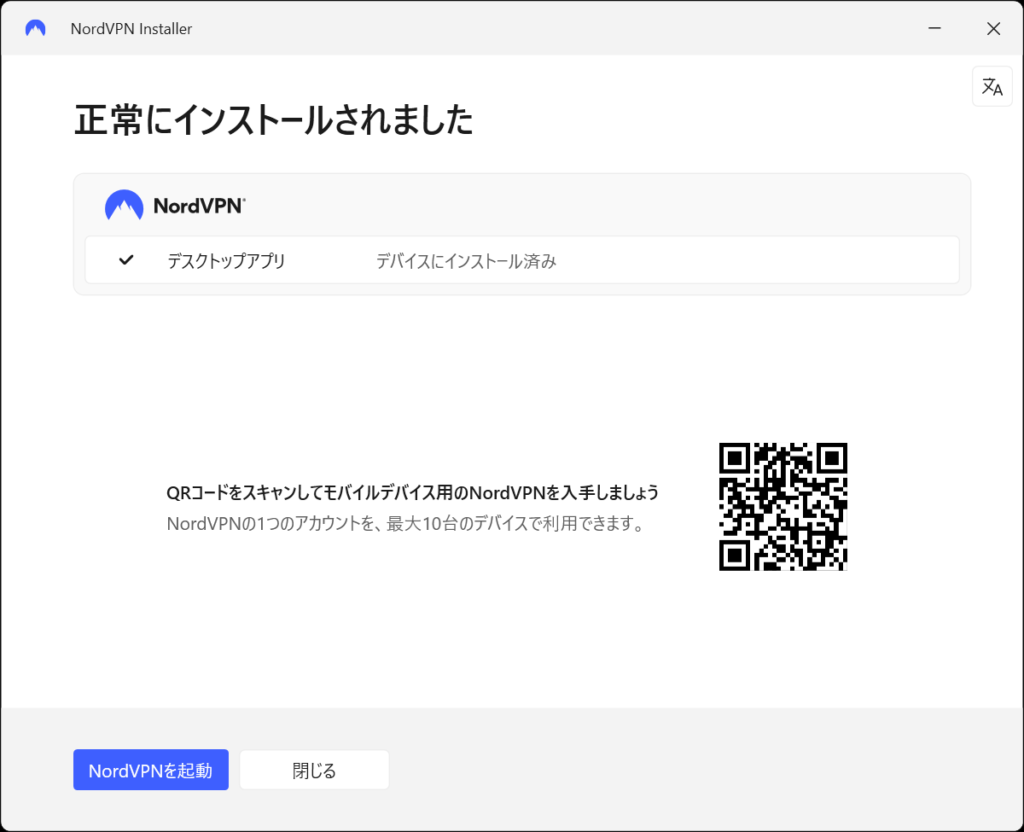 左下の「NordVPNを起動」をクリックしましょう。