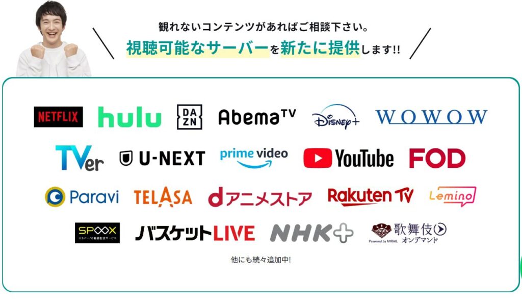 他社のVPNサービスで観られなかった動画コンテンツもGlocal VPNなら観れる可能性が高いです。