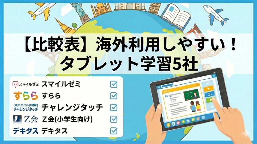 オンライン教材やタブレット学習が気になるけど、海外で使える?お得に使えるサービスはあるの?