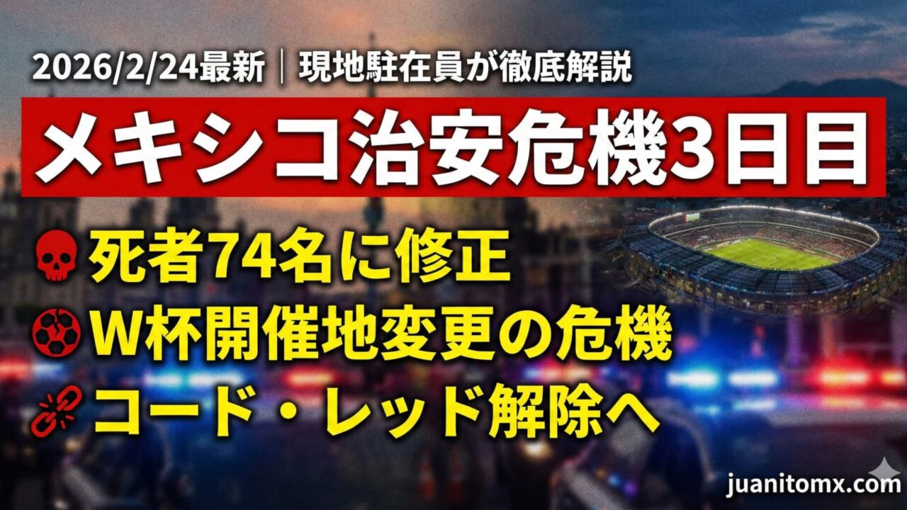 【2026/2/24最新】メキシコ治安危機3日目|死者74名に修正・W杯開催地変更の危機・コード・レッド解除へ【現地駐在員が徹底解説】