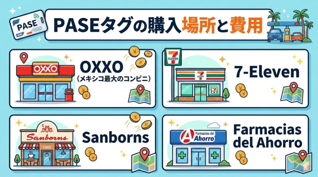 - PASEタグは$150ペソでOXXOなどのコンビニで購入可能