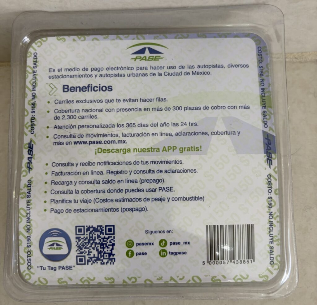 実は、メキシコでは「PASE(パセ)」という電子料金収受タグを使えば、専用レーンで料金所をスムーズに通過できます。